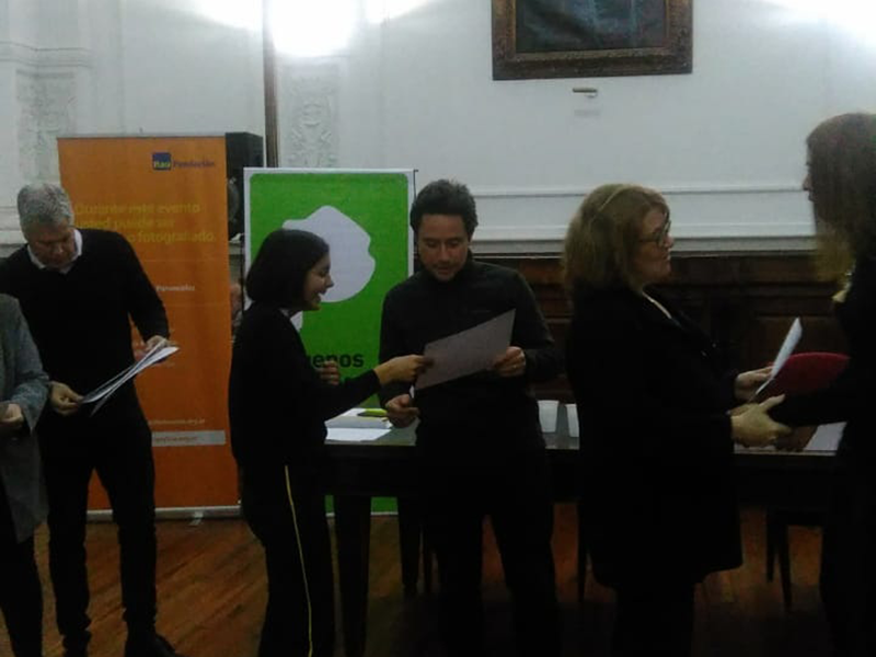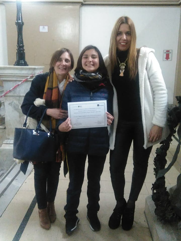 El día viernes 28 de Junio nuestra alumna Clara Cuenca de 5° año de Ciencias Naturales recibió en la ciudad de La Plata un diploma por haber participado en el Certamen Premio Itaú Cuento Digital. Fue acompañada por su mamá y la profesora Adriana Martinez.